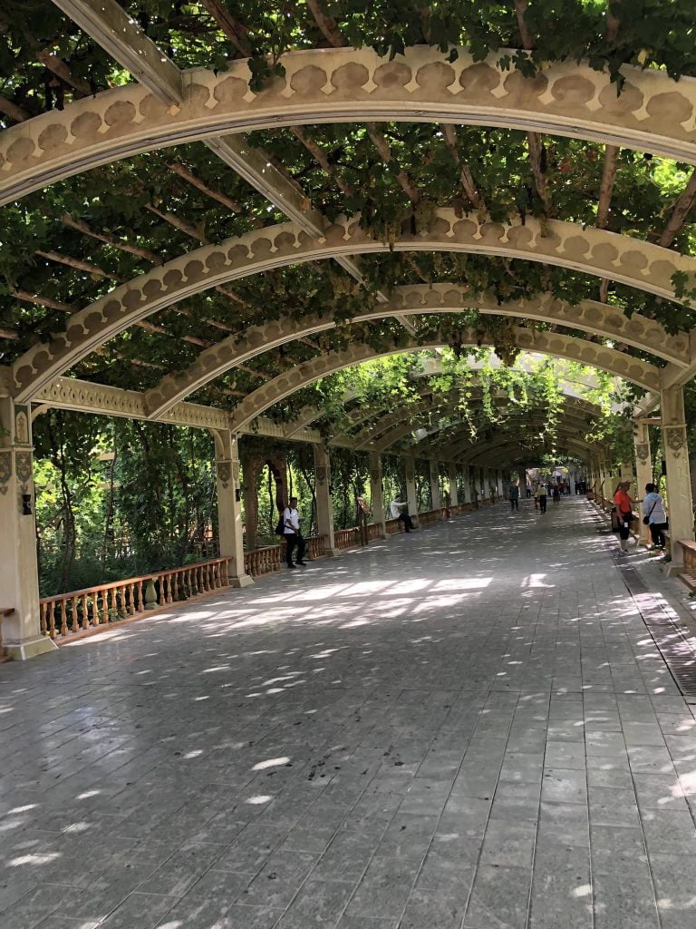 หลังจากรับประทานอาหารเช้าที่โรงแรมแล้ว นั่งรถไปชมระบบชลประทานน้ำใต้ดินของถูลู่ฟาน (Turpan Water System) หรืออุโมงค์น้ำคาเรช ภาษาจีนว่าคานเอ๋อจิ่ง ถือเป็นสิ่งประดิษฐ์ที่ยิ่งใหญ่ติด 1 ใน 3 ของจีน รองจากกำแพงเมืองจีน เป็นความพยายามของมนุษย์ยุคโบราณที่คิดค้นวิธีนำน้ำใต้ดินที่เกิดจากการละลายของหิมะบนเทือกเขาเทียนชานมาใช้ โดยทำเครื่องกว้านดินขึ้นส่งคนลงไปทำทางน้ำไหลใต้ดินบางจุดลึก 80 เมตร จนได้อุโมงค์น้ำใช้เครื่องตักขึ้นมาใช้ในการยังชีพและเพาะปลูก ระบบนี้กระจายไปตามหมู่บ้านรวมระยะทาง 5,000 เมตร เชื่อมน้ำกว่าพันแห่ง หลังพัฒนาระบบคาเรซถูลู่ฟานก็อุดมสมบูรณ์ขึ้น กลายเป็นโอเอซีสกลางทะเลทรายทากลามากัน (Taklamakan Desert) กลายเป็นทางในเส้นทางสายไหมและเจริญรุ่งเรืองมาจนถึงปัจจุบัน ทางเข้าดูระบบจะมีของใช้ในโบราณแสดง ไปดูบ่อแรกที่ขุดน้ำปากทางออกของน้ำและอุโมงค์น้ำที่มีน้ำใสไหลต่อกันไปที่จุดต่างๆ ทางออกเป็นจุดขายของทึ่ระลึกและมีโครงเหล็กทำทางเดินโดยปลูกองุ่นโชว์